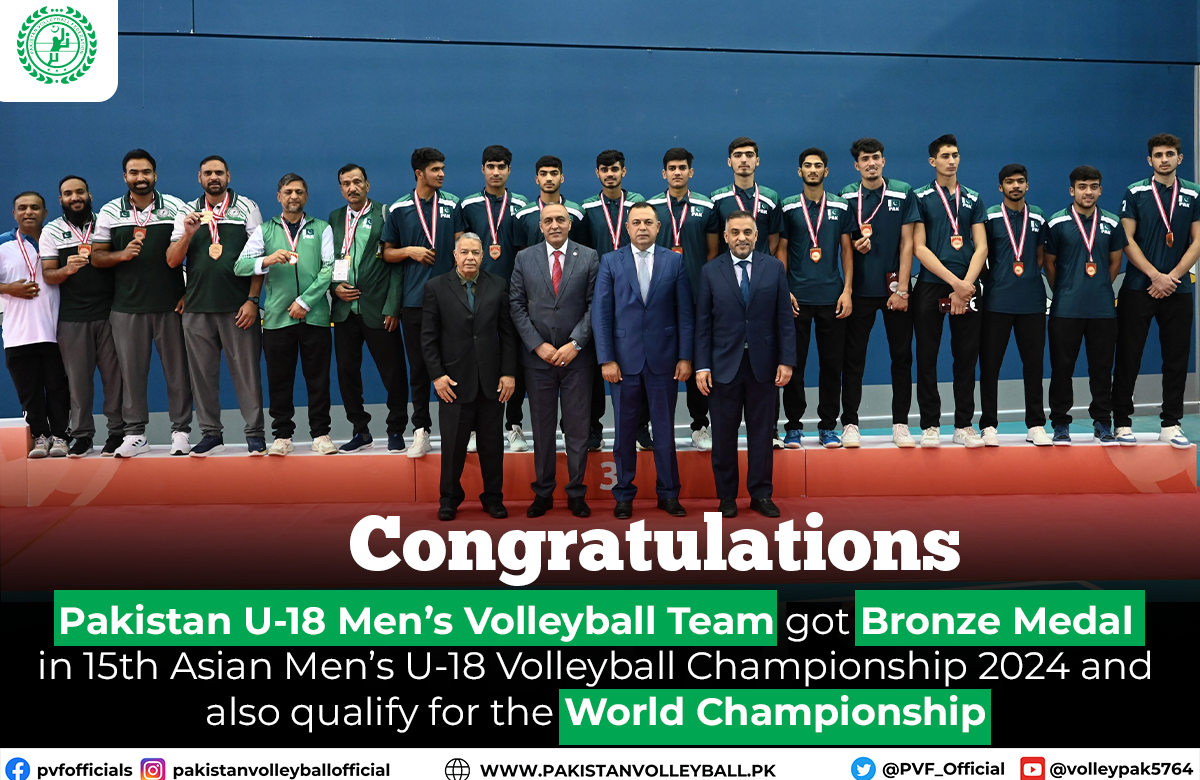 Pakistan Clinches Bronze Medal at the 15th Asian Men’s U18 Volleyball Championship Bahrain, August 4,