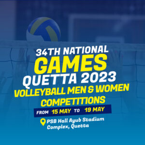 The Pakistan Volleyball Federation is organizing volleyball (Men & Women) competitions form 15 – 19 May, 2023 at PSB Gymnasium Hall Quetta as a part of 34th National Games.