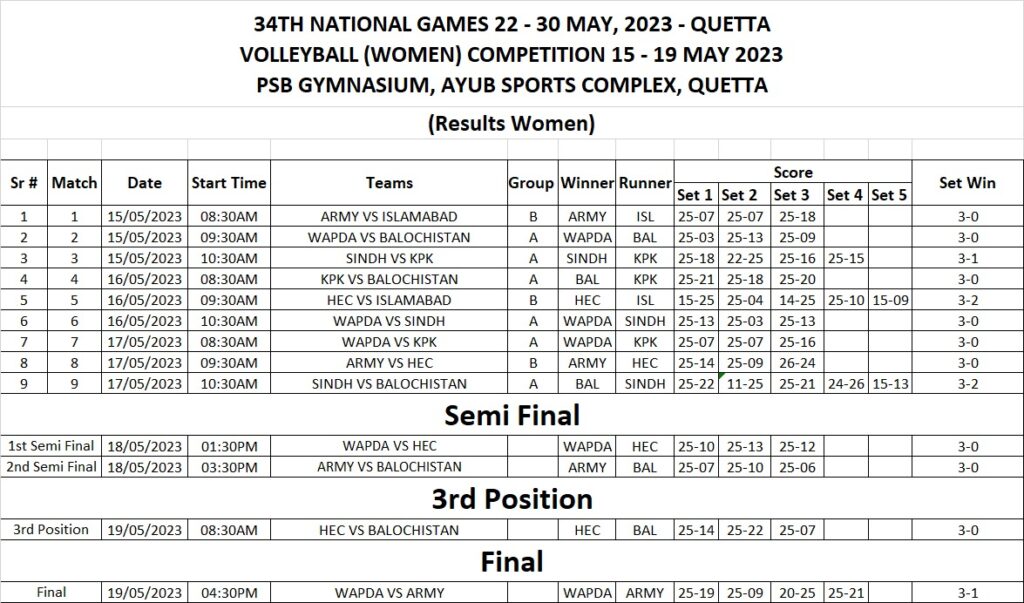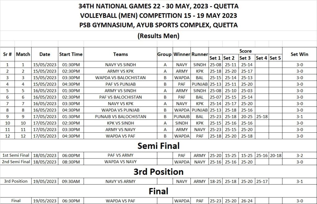 It is informed that 34th National Games are scheduled to be held from 22 – 30 May, 2023 at Quetta. The Volleyball Men & Women has been included as one of discipline in the said Games.