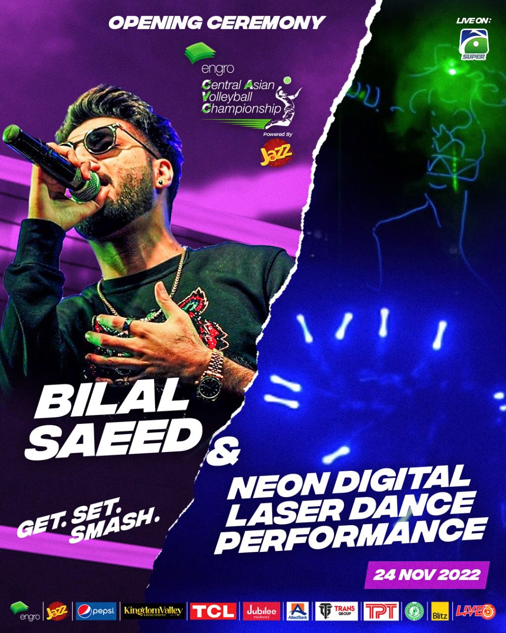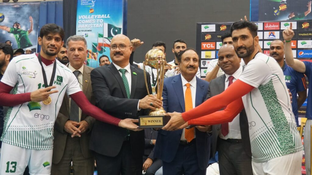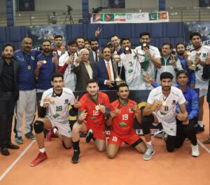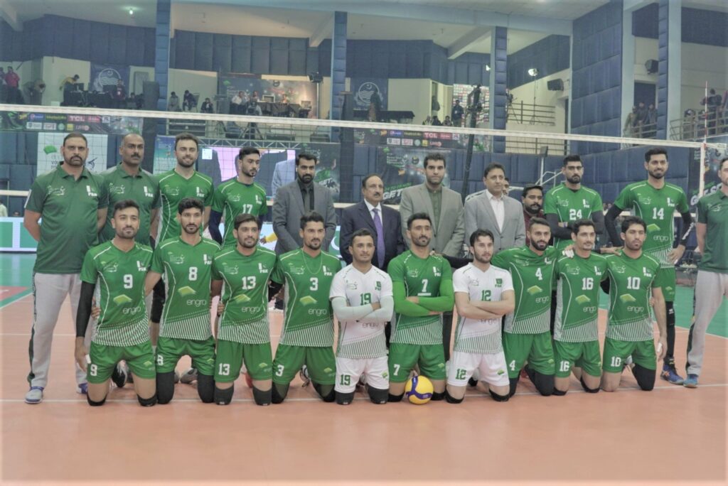 24 November 2022, Thursday. After 17 years, the Central Asian Volleyball Championship, an International Volleyball tournament in Pakistan, began with a colourful ceremony in which all the five teams participating in the tournament participated and the live performance of Pakistan’s famous pop singer Bilal Saeed graced the opening ceremony and won the hearts of participants and after that the electric dance of the young boys made the event colourful. Provincial Sports Minister Malik Taimur Masoud the special guest of the opening ceremony, participated in the ceremony. Chairman Pakistan Volleyball Federation Chaudhry Muhammad Yaqoob and President Pakistan Volleyball Federation Chaudhry Iftikhar Ahmad Sohail Khawar Mir Chairman Sialkot Zone Volleyball Association and Shah Naeem Zafar Secretary General Pakistan Volleyball Federation welcomed Provincial Sports Minister Malik Taimur Masood. On this occasion, Chairman Pakistan Volleyball Federation in his address thanked all the sponsors Punjab Government and all the teams participating in the tournament. He said that the volleyball development program with the support of the title sponsor Engro is going on with the target of qualifying for the 2028 World Olympics and Volleyball World Championship, the time is not far when the people of Pakistan will be proud that their team is one of the best volleyball teams in the world.